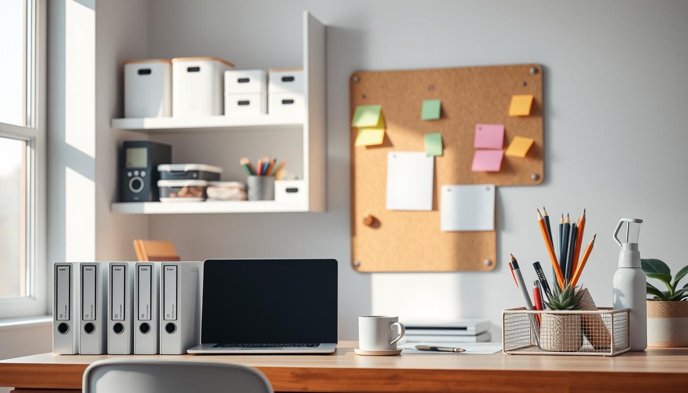 Having a tidy workspace is key for getting things done well. A clean desk can make you up to 30% more productive, studies show. To get there, you need good workspace organization tips, like using vertical space and smart desktop storage.